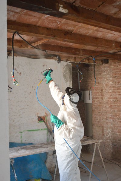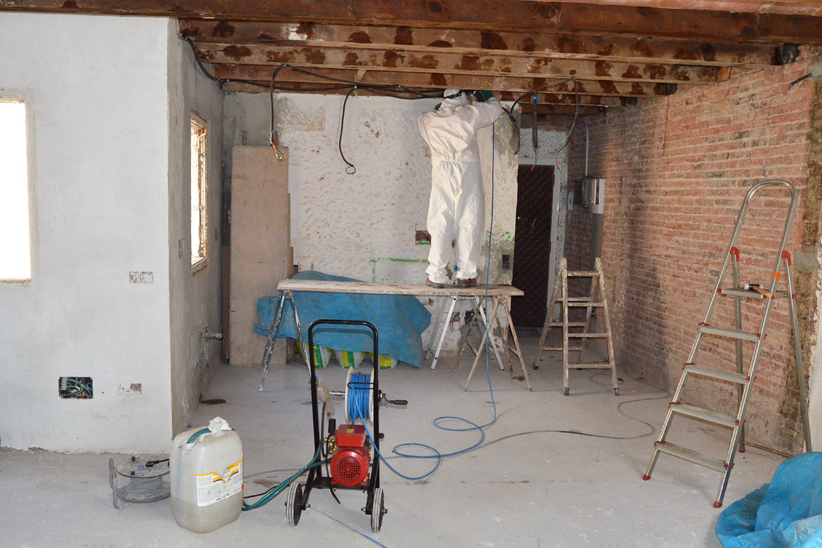 Lo primero de todo hay que preparar la madera eliminando las partes degradadas. En segundo lugar, hay que perforar la madera para crear cámaras donde se inyectará el insecticida. Luego se ponen unas válvulas para que el químico penetre, pero no salga y se quede en el interior difundiéndose por la madera. En último lugar, se realiza una pulverización sobre la superficie de las vigas para crear una capa protectora. Todo este proceso requiere el máximo cuidado y atención.