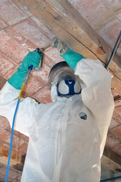 Entre los principales enemigos de la madera están los insectos. En concreto las termitas (Isópteros) y los escarabajos (Coleópteros). Entre los últimos existe una gran variedad de especies a las que llamamos carcomas de la madera. En las imágenes se pueden ver las diferentes fases de un tratamiento curativo contra carcomas que estaban atacando las vigas de una vivienda. Se trata de un tratamiento complejo y que requiere de un estudio antes de su ejecución.