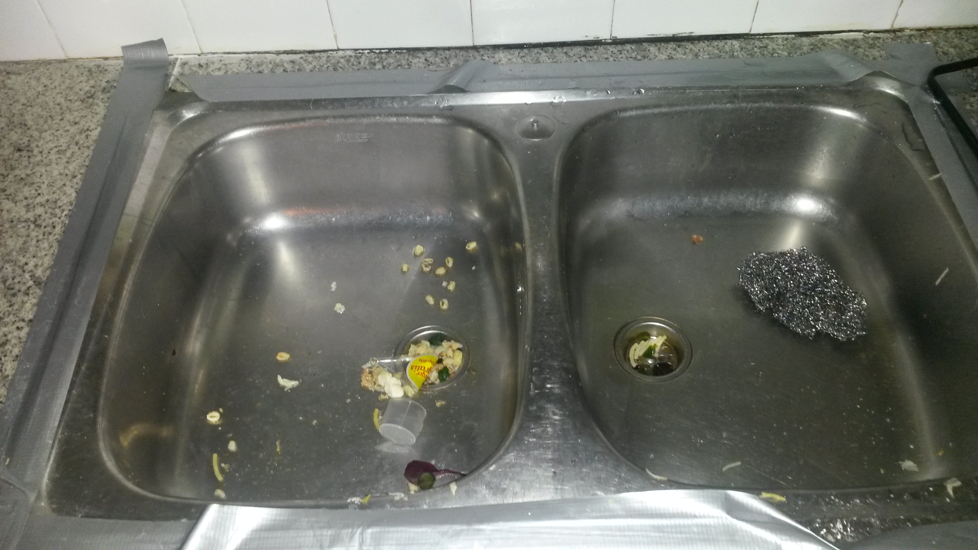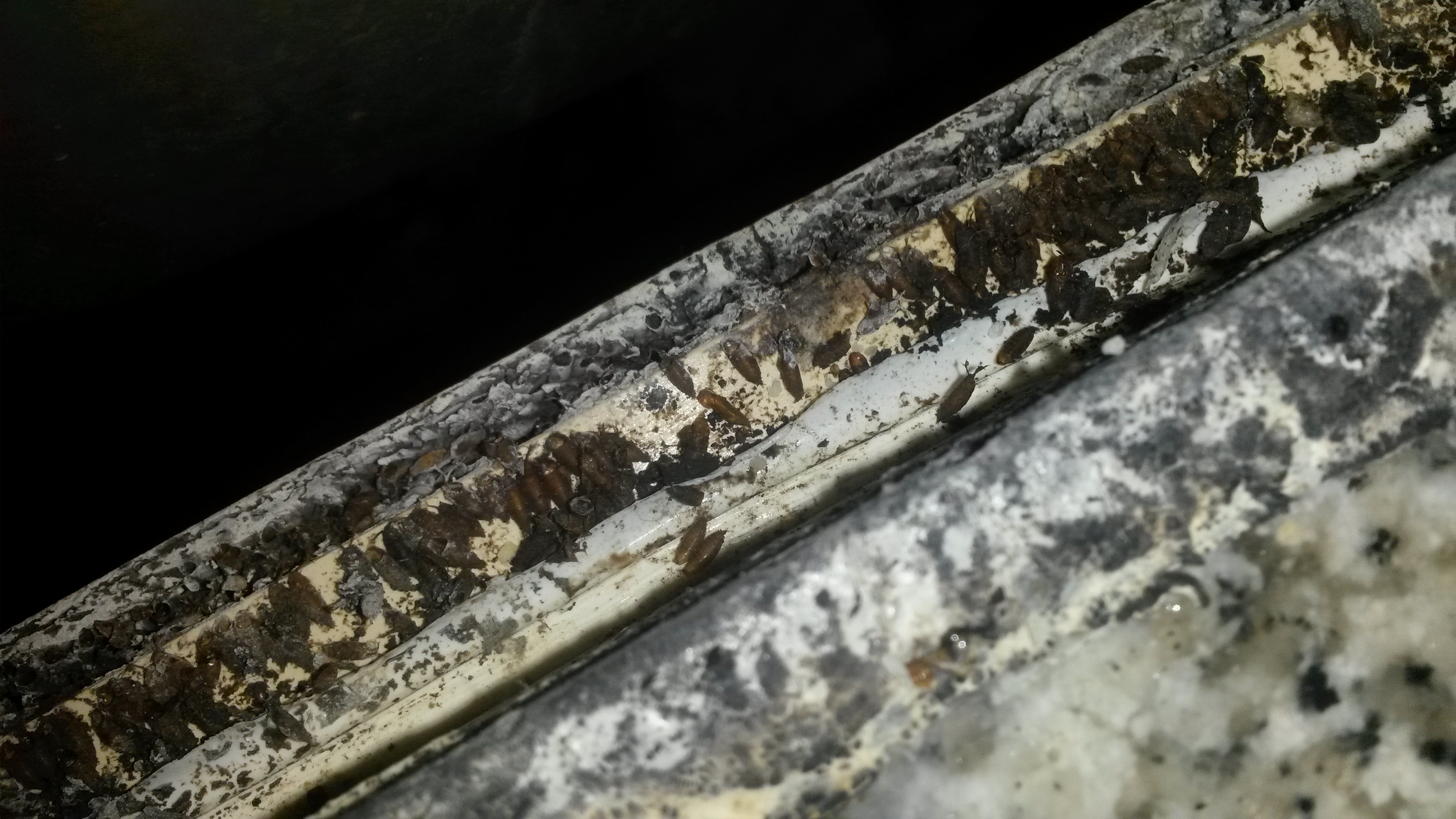Pero en este caso, después de bastante inspección, se tuvo que levantar el fregadero de la cocina (Foto 1) para encontrar que en el lateral (Foto 2) donde se acumulaba humedad y algo de materia orgánica (Foto 3) , había realizado la puesta de huevos en dicho lateral. (Fotos 4 y 5)