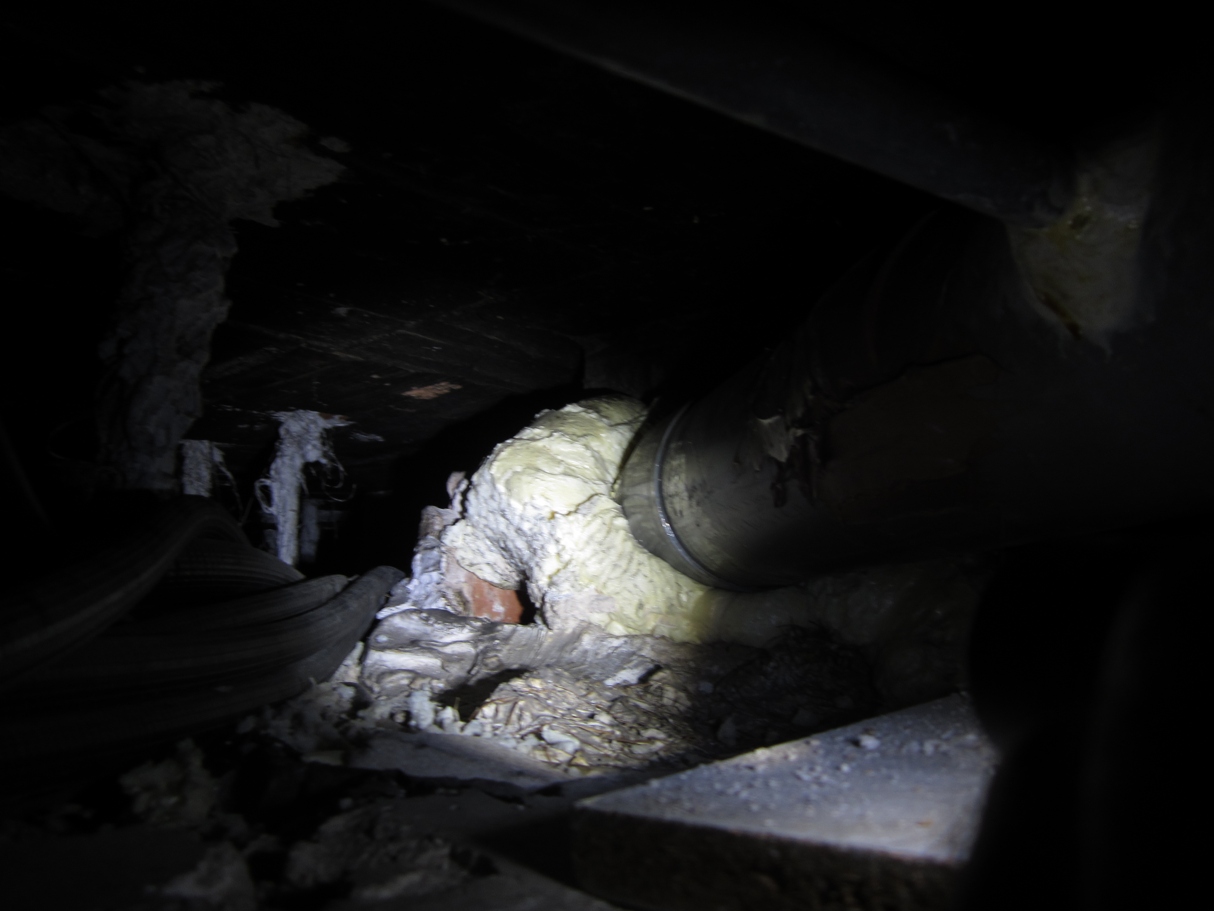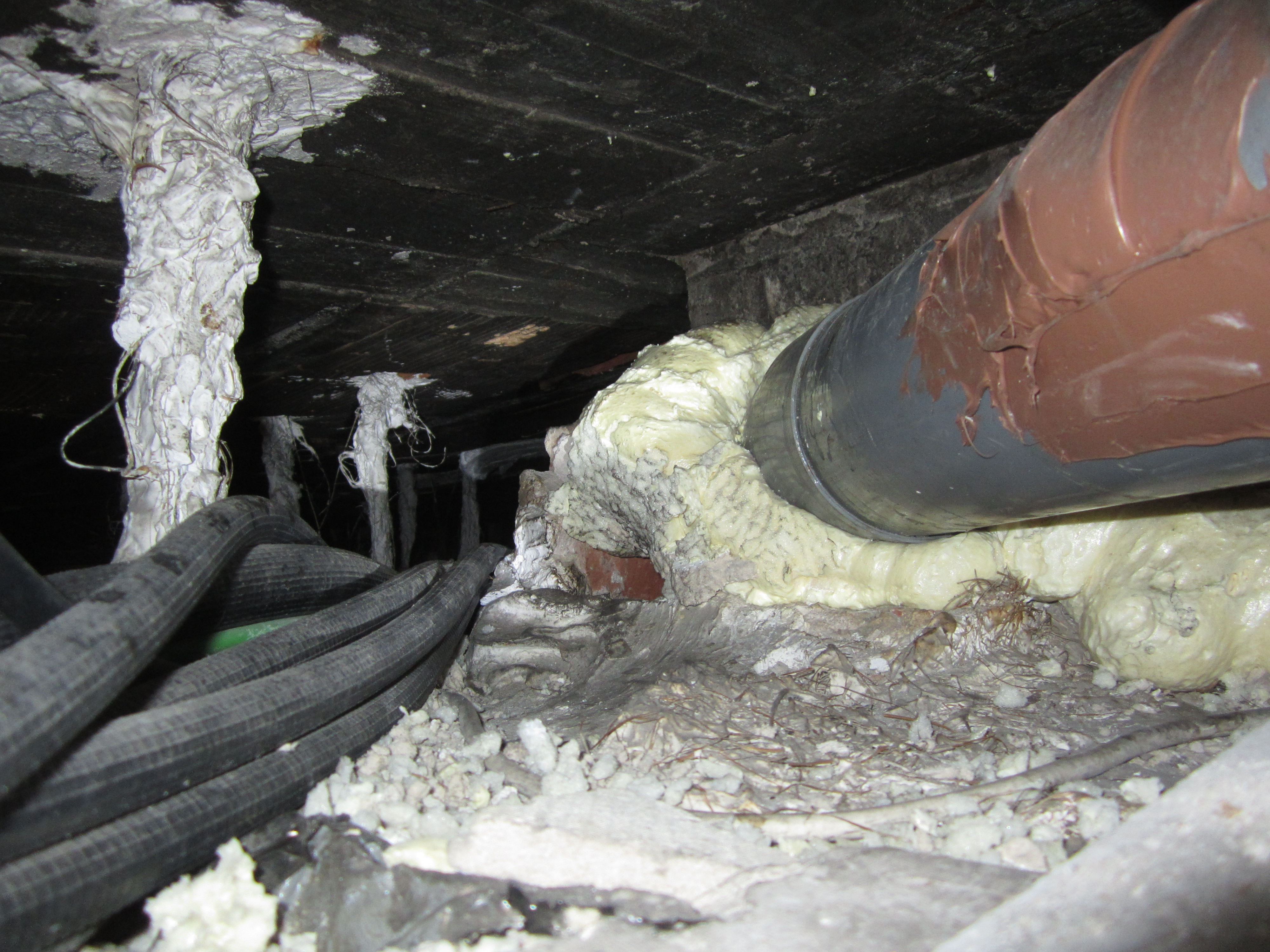 En este caso las estructurales, del sellado de los cajones de bajantes, en un sobre techo, realizada con espuma de poliuretano, FALLÓ, como se pueden observar en las fotos las ratas royeron, la espuma y accedieron a la instalación.