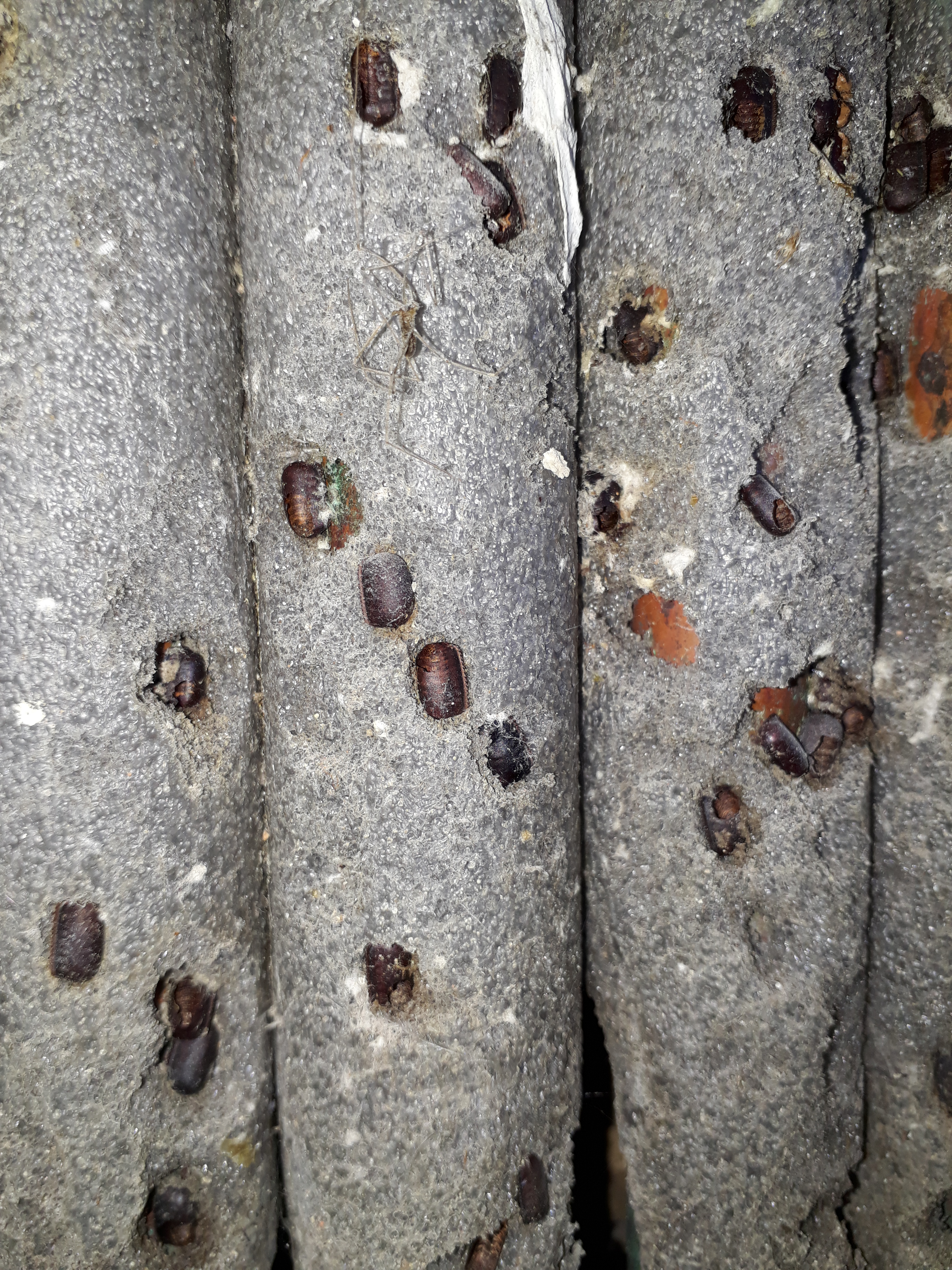 En la actualidad, la especie más extendida es la cucaracha americana (Periplaneta americana). Ha colonizado el alcantarillado en todos sus tramos, desde el privado hasta el público. Una característica es que las hembras pueden fijar la ooteca a las superficies. Por una parte, la hembra puede roer la superficie para acomodar la ooteca. Y por otro, segrega una sustancia pegajosa que utiliza para adherir la ooteca. En las imágenes se pueden ver ootecas que han sido puestas en la espuma aislante de tubos de agua. Es curioso el sustrato que eligieron las cucarachas. A lo mejor hay que inventar una trampa de captura con este tipo de material.