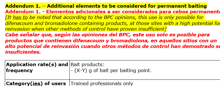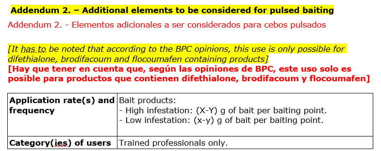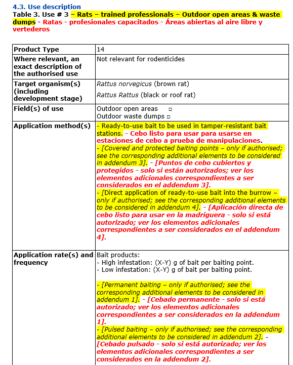 He cogido como referencia un modelo de registro para «Personal Profesional Especializado» y también he extraido el apartado de » tratamientos en áreas abiertas y vertederos» pero podia haber elegido cualquiera de los otros usos autorizados «en interiores» «alrededor de edificaciones» «alcantarillas» pero éste me venia bien para el ejemplo: