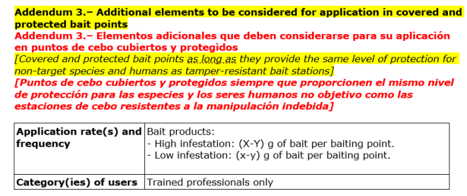 El anexo 3 que está dentro de Metodos de Aplicación, sobre aplicación de puntos de cebos cubiertos y protegidos y refiere al anexo 3, que dice lo siguiente;