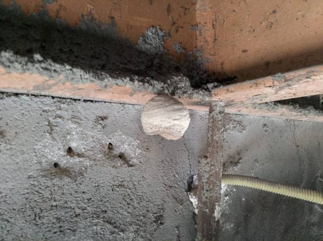 Empezamos a retirar nidos primarios, en este caso situado en una caja de persiana en una guarderia de la zona del Vallès Occidental, al parecer la fundadora, lo habia abanadonado, por ausencia de la misma y el estado de las larvas encontradas.