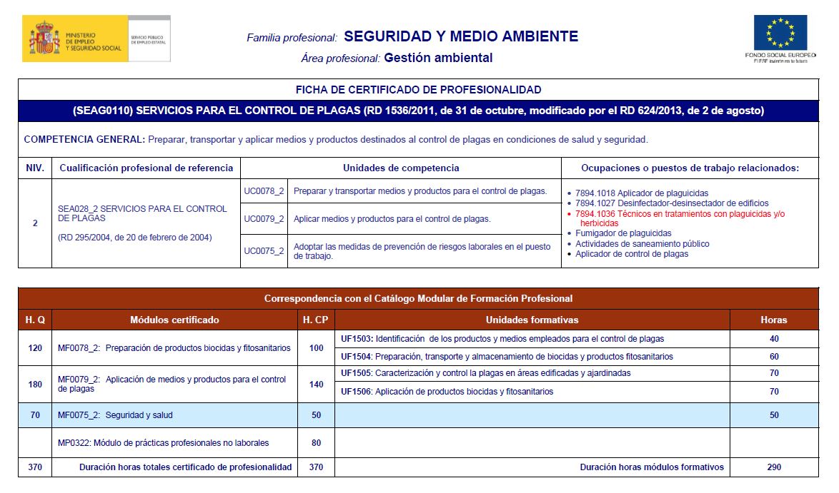 UF1503: Identificación de los productos y medios empleados para el control de plagas (40 horas)