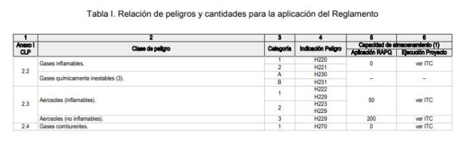 En este Real Decreto existe una tabla donde muestra las cantidades a partir de las cuales aplica el Reglamento, las exponemos; hemos de fijarnos en la columna 5, las cantidades por debajo están excluidas del reglamento.