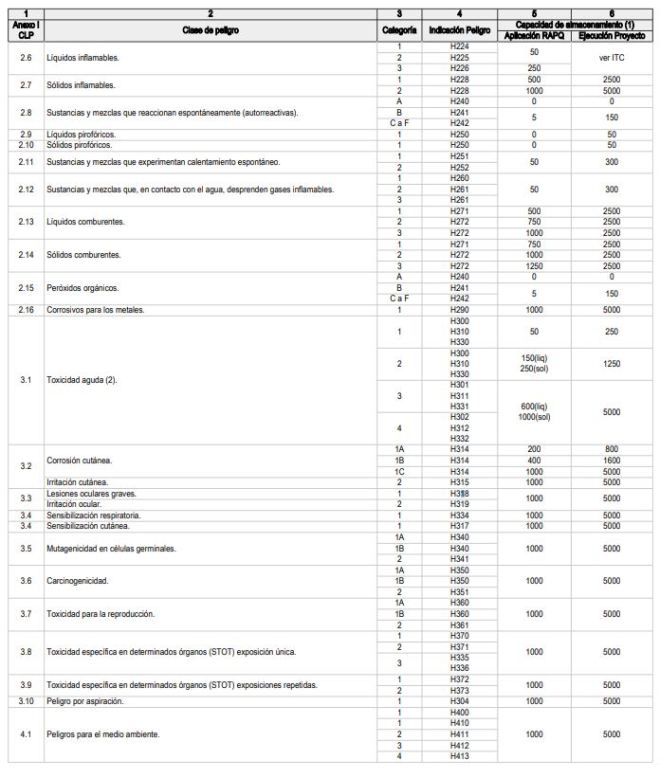 – Una o varias Instrucciones Técnicas Complementarias relativas a almacenamiento de productos químicos (ITC MIE APQ).