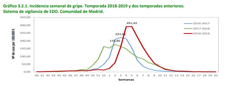 Como ejemplo sacamos extracto de VIGILANCIA EPIDEMIOLÓGICA DE LA GRIPE EN LA COMUNIDAD DE MADRID.