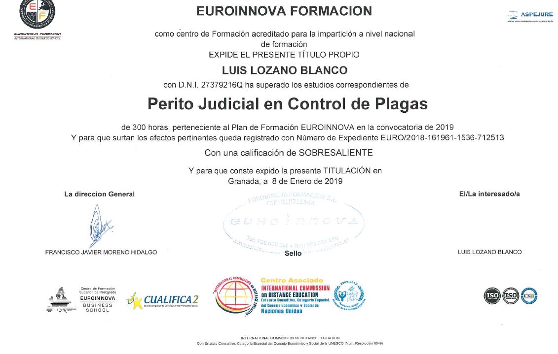 Perito Judicial en Control de Plagas