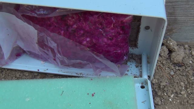El tinte lo mezclamos con el cebo en polvo, el cual es una formulación de un regulador de crecimiento (IGR) y celulosa de la cual se alimentan las termitas. Y esto es lo que pasa cuando lo ingieren.