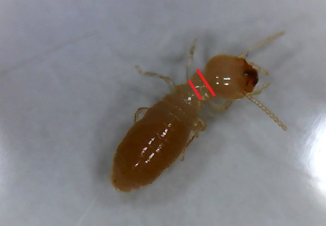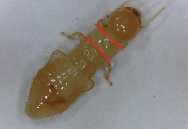 Una técnica importante a utilizar en los tratamientos contra termita subterránea (Reticulitermes spp) es el tintado del cebo. Con ello conseguimos que todos los individuos de la colonia queden tintados gracias a que la cutícula de estos insectos sociales es muy fina, casi transparente. Esto nos sirve para saber si nos encontramos antes una o varias colonias las que están afectando la instalación. Si aplicado el cebo tintado en un solo punto, al cabo de un tiempo, vemos que aparecen individuos tintados en otros puntos alejados, entonces vamos por buen camino, ya que estamos actuando contra una solo colonia.